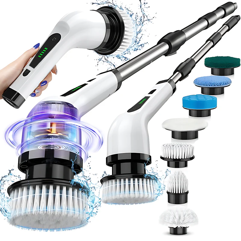 Perie Electrică Rotativă Multifuncțională 9 în 1 cu 2 Viteze, Mâner Extensibil și Baterie Reîncărcabilă – Curățare Rapidă și Eficientă