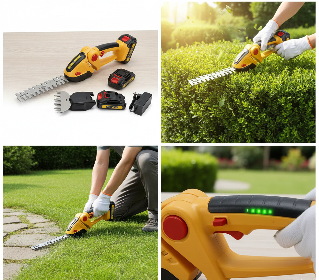 Sistem 2-în-1: Include lame interschimbabile pentru iarbă și gard viu, acoperind toate nevoile de finisare a grădinii.