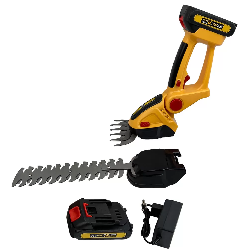 Setul multifuncțional German Meister 36V este soluția completă pentru întreținerea precisă a grădinii dumneavoastră. Acest dispozitiv 2-în-1 permite trecerea rapidă de la tunsul marginilor de gazon la fasonarea arbuștilor și a gardului viu, oferind putere și libertate de mișcare totală fără cabluri.