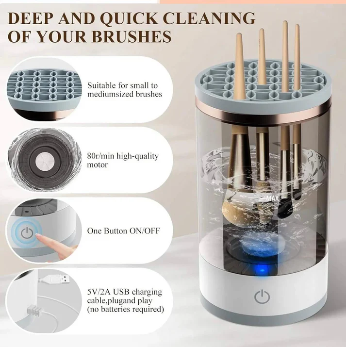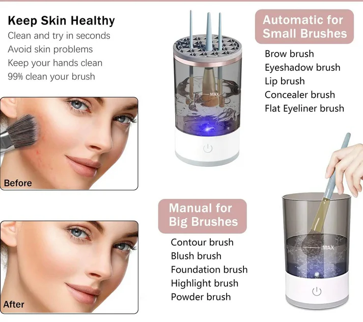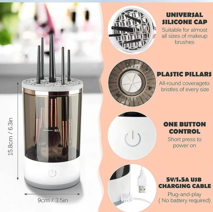 Spune adio pensulelor murdare și timpului pierdut! Cu aparatul electric 3 în 1 pentru curățarea pensulelor de machiaj, îți transformi rutina într-o experiență rapidă, igienică și profesională. Fie că ești make-up artist sau pasionată de beauty, acest gadget este soluția ideală pentru pensule perfect curate și uscate în doar câteva secunde.