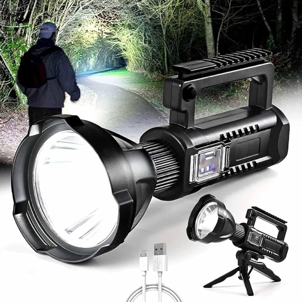 Lanterna puternica, 500 m, cu incarcare USB, si functie PowerBank Baterie Externa, Varianta MARE, trepied CADOU