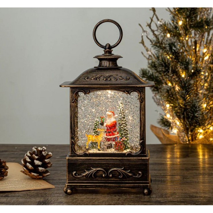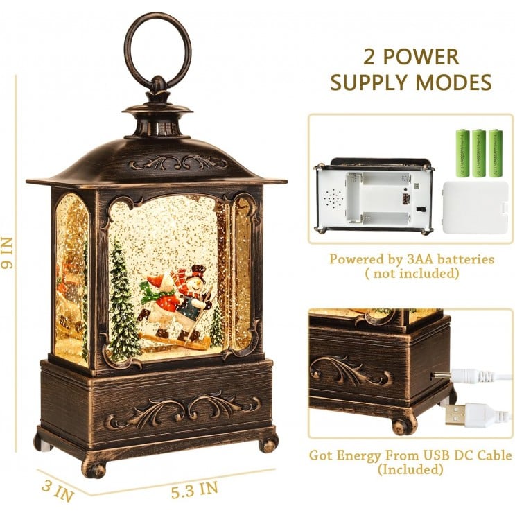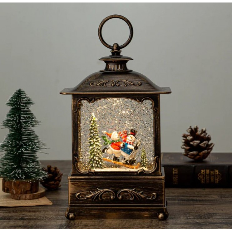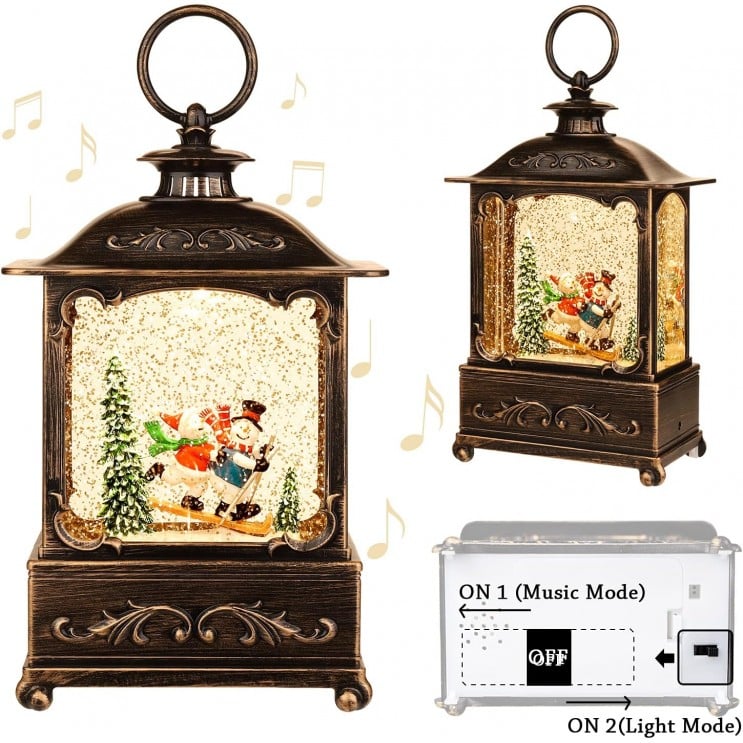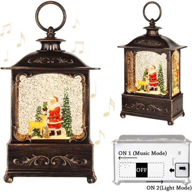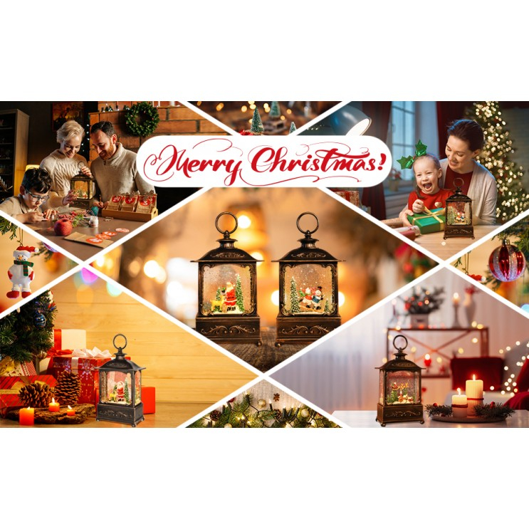 Felinarul este prevăzut cu iluminare LED în ton cald, efect realist de ninsoare și 8 melodii clasice de Crăciun, care creează o atmosferă feerică de sărbătoare. Fulgii se rotesc lin în interiorul lichidului, completând imaginea de iarnă într-un mod spectaculos și relaxant.