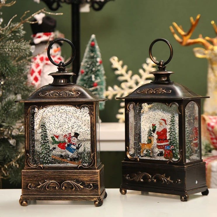 Felinar de Crăciun cu Efect de Ninsoare, Luminos și Muzical – Încărcare USB
