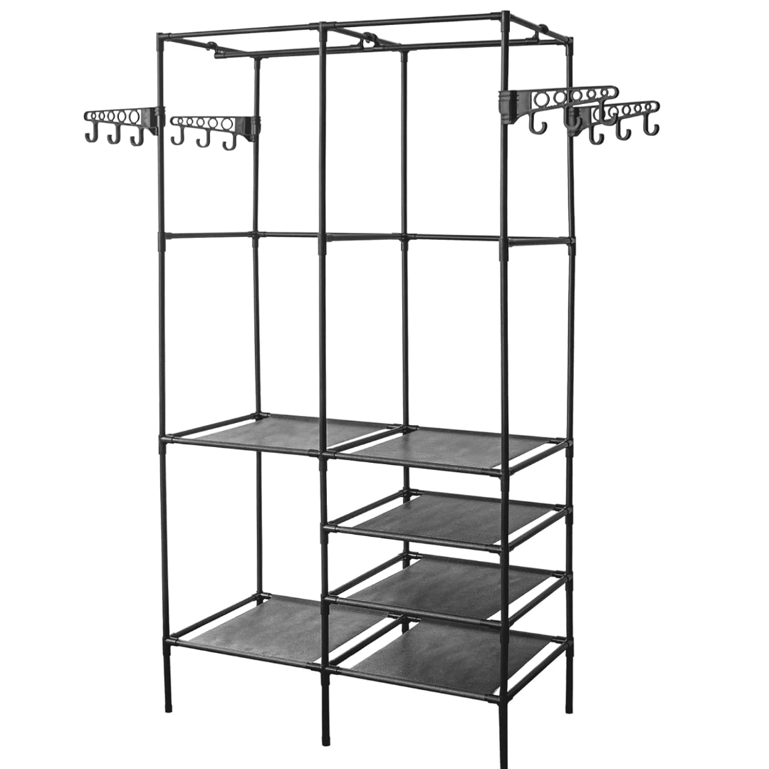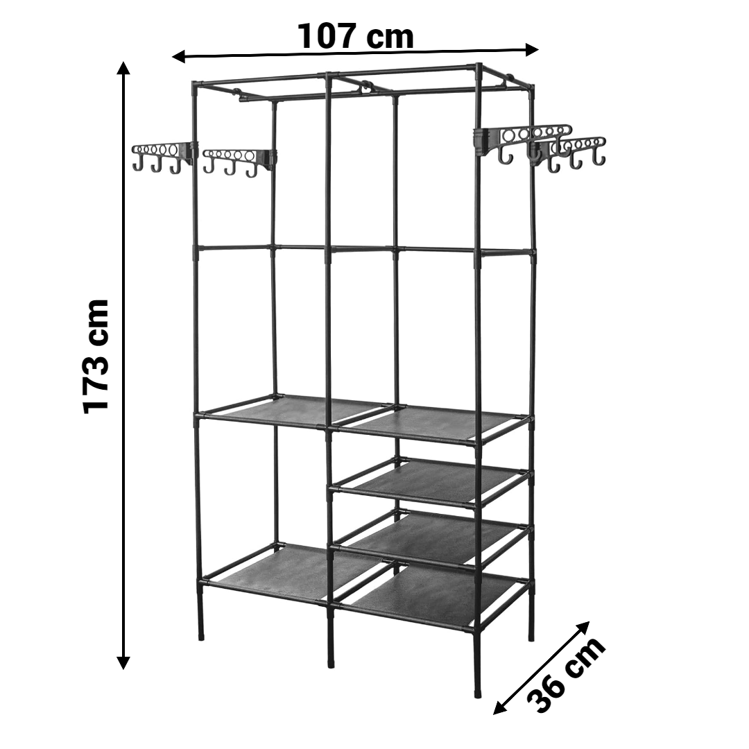 Suport Organizator Haine și Pantofi cu Agățători Laterale – Design Metalic Robust, 173 x 107 x 36 cm