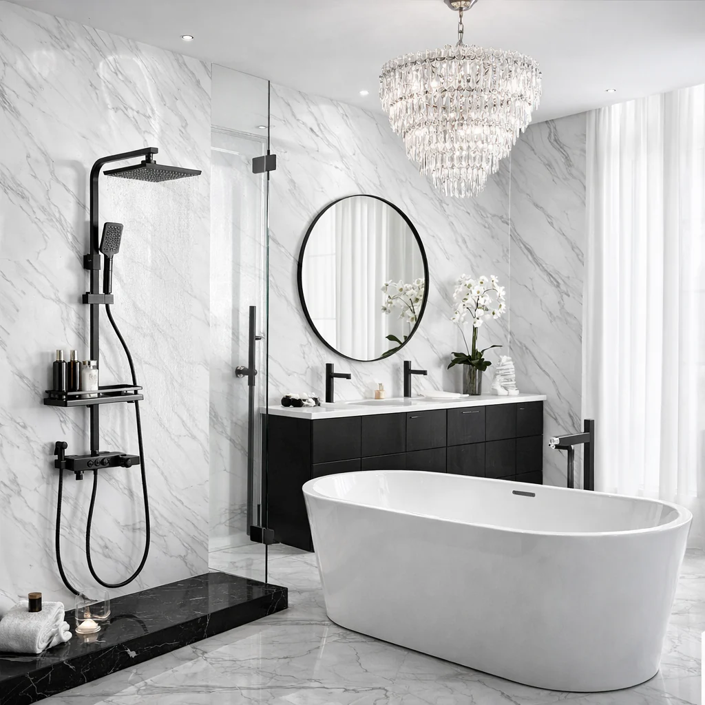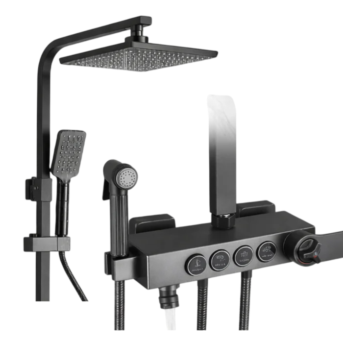 Transformă fiecare duș într-o experiență relaxantă și sigură cu această coloană de duș modernă, echipată cu termostat și 4 funcții de curgere. Designul elegant și materialele premium o fac potrivită pentru orice baie contemporană.