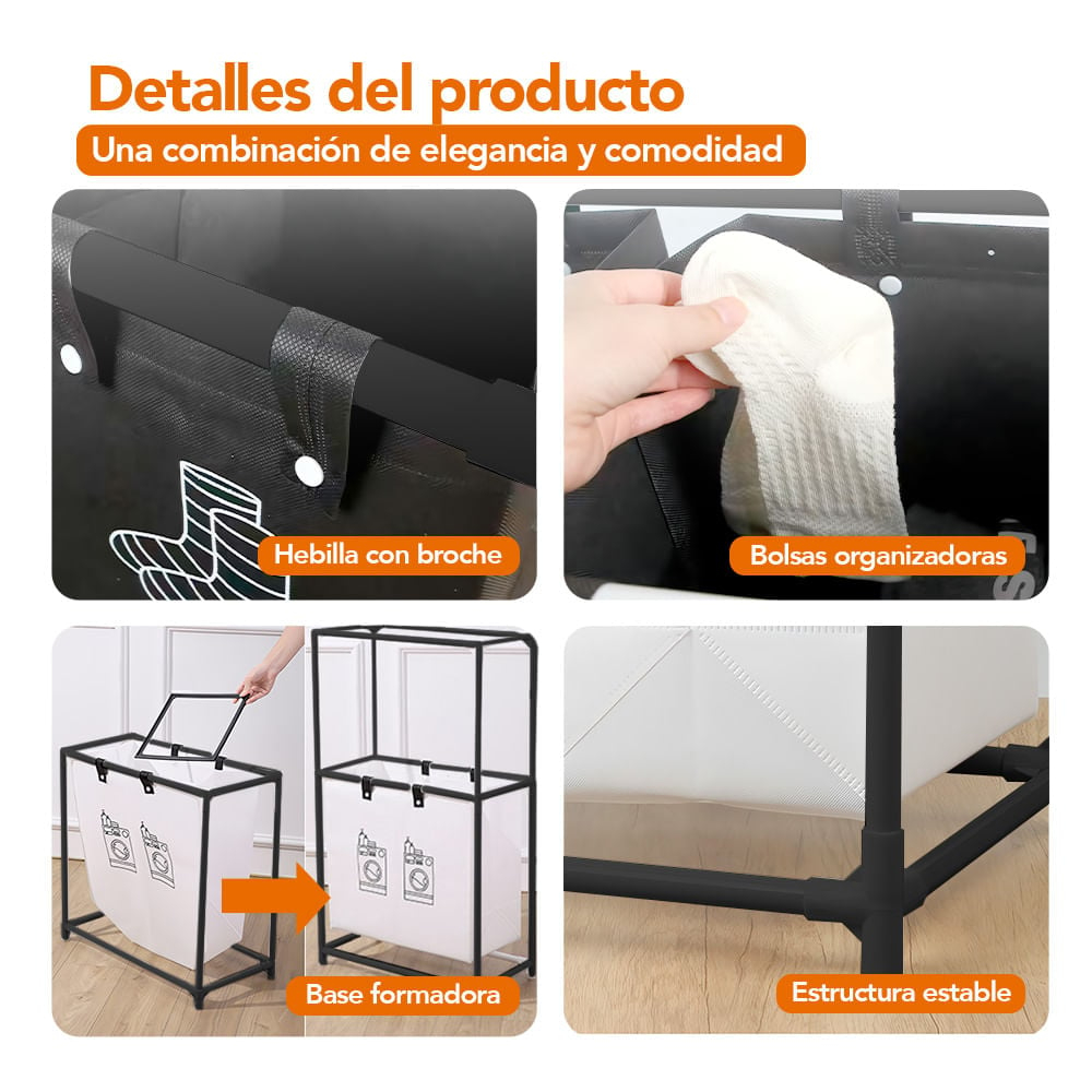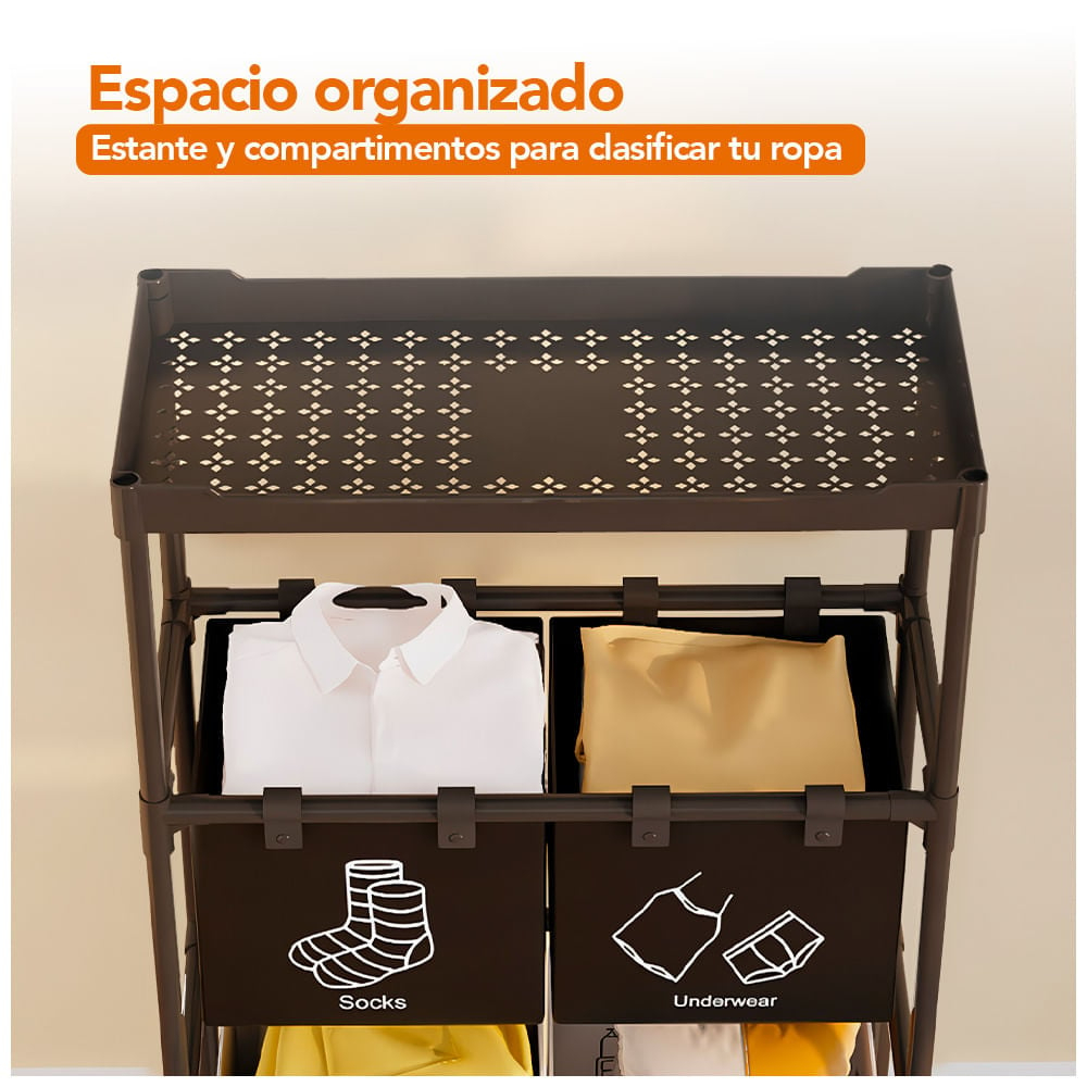 🔄 4 secțiuni de sortare – separi rapid hainele pe culori sau categorii, fără bătăi de cap înainte de spălat