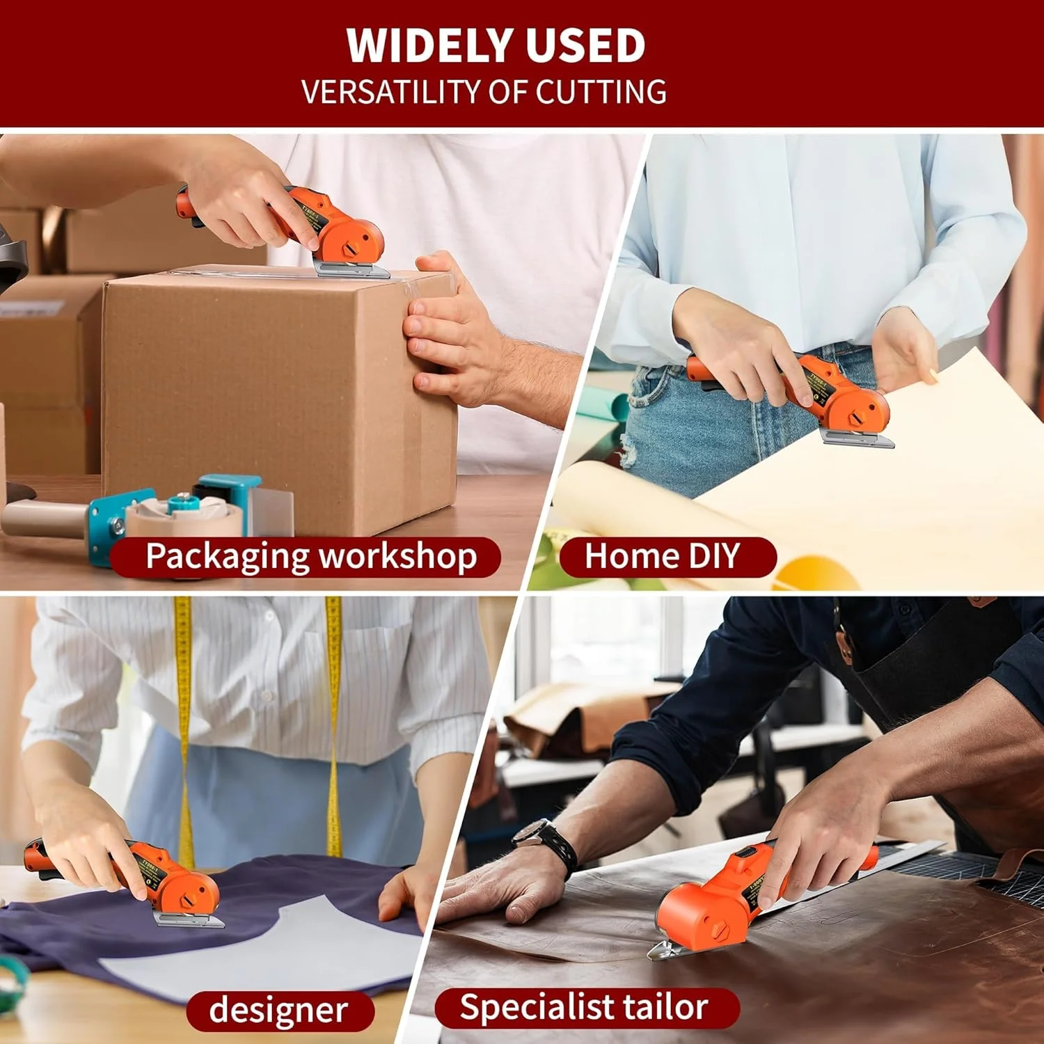 Cutter Electric pentru Textile, Piele si Cartoane, Motor Brushless, Lama Otel si Baterie Reincarcabila, LED Integrat