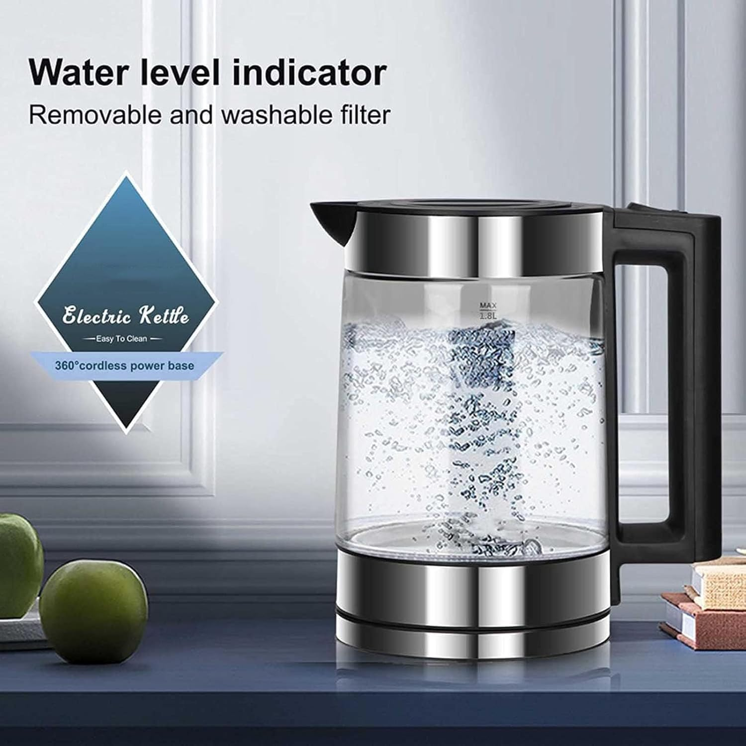 Design elegant: Cu un finisaj din sticla si detalii argintii, acest fierbator va adauga un aer sofisticat in orice bucatarie sau birou.
