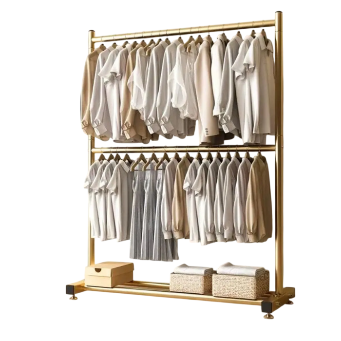 Suport pentru Haine Metalic cu 2 Niveluri – Organizare Eficienta pentru Dormitor sau Hol